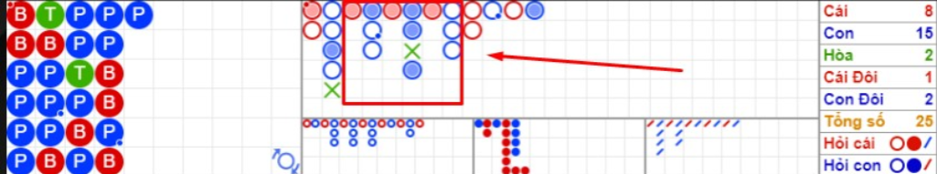 Đường Nhỏ (Big Eye Boy): Dạng đường này được sử dụng để theo dõi những ván có sự thay đổi trong thắng thua. Nó thường phản ánh sự thay đổi trong kết quả từ đường chính và cho phép người chơi nhận diện được sự dịch chuyển trong xu hướng thắng thua.